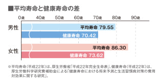 「健康寿命」という言葉をご存知ですか?健康寿命とは、健康上の問題がない状態で日常生活を送れる期間のことです。平均寿命から健康寿命を引くと、男性は約9年、女性は約12年となります。